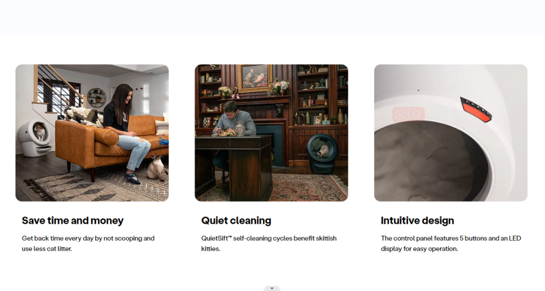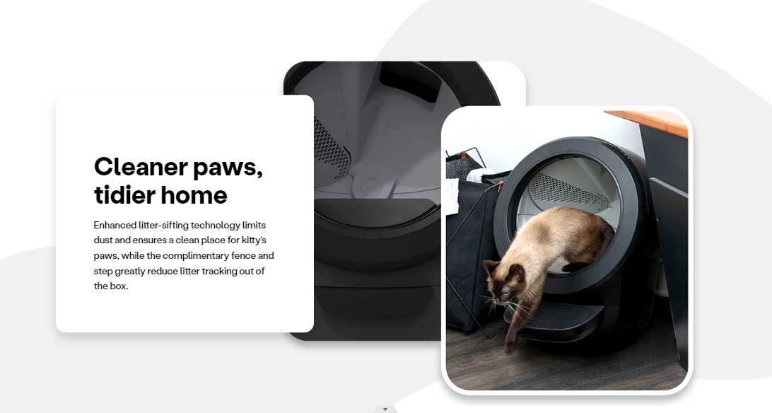 A self-cleaning litter box offers many benefits for both cats and pet parents by automatically providing a clean bed of litter every time your cat needs to go. Cats naturally prefer a clean place to do their business and if they’re presented with a dirty litter box, they may go outside the litter box or not go at all—potentially leading to a host of health problems. A self-cleaning litter box like Smart litter box eliminates the need for pet parents to have to scoop, saving time and frustration brought on by an unpleasant chore. Additional benefits include better managing odor control, keeping cats’ paws cleaner, and helping reduce litter usage. With Smart litter box, you’re not just buying a self-cleaning litter box—you’re getting a better way of life with your cat!