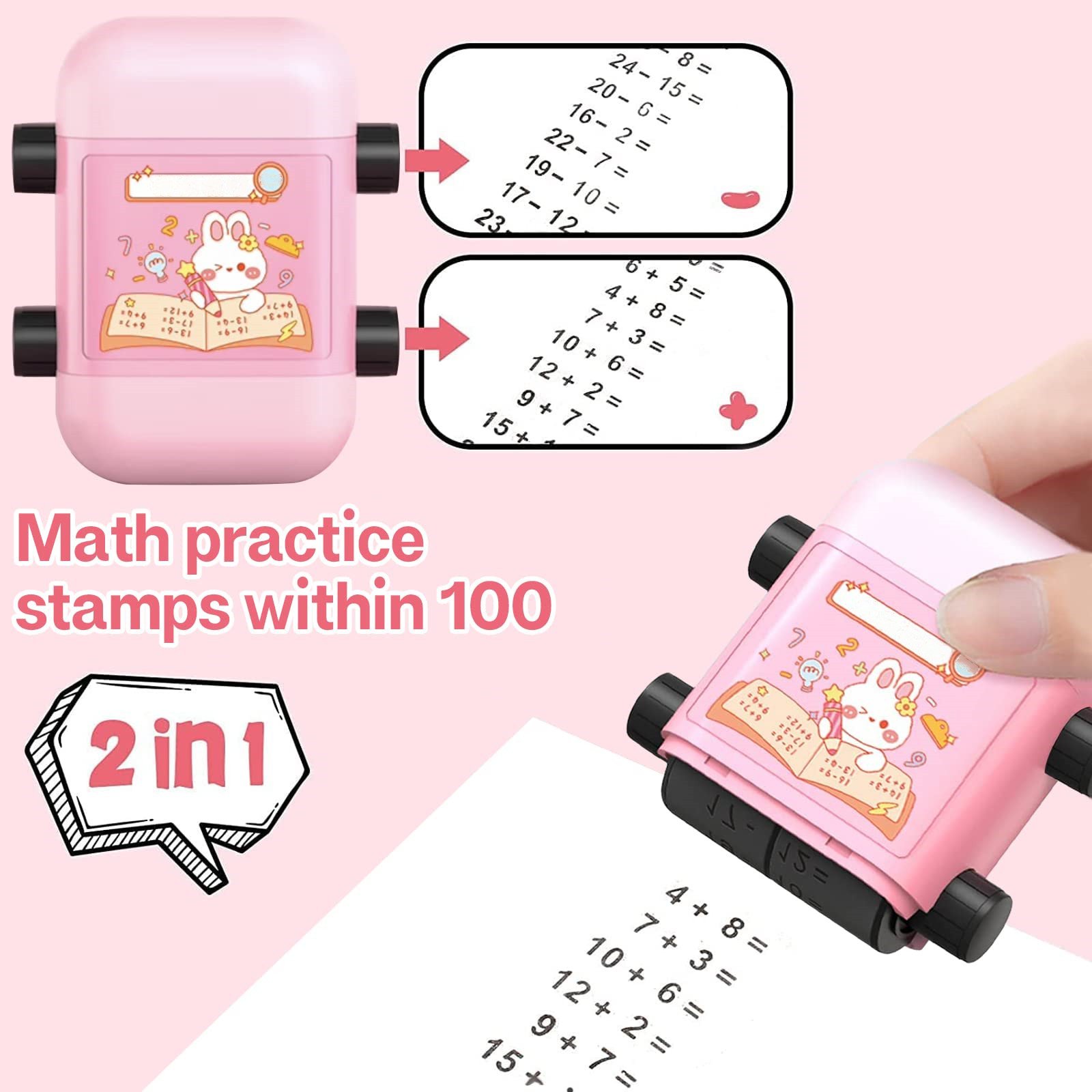 💖Quick and Convenient: Save time and effort No more tedious math preparation! With our roller stamp, gently scrolling, ccan efficiently and quickly print out math practice questions within 100.