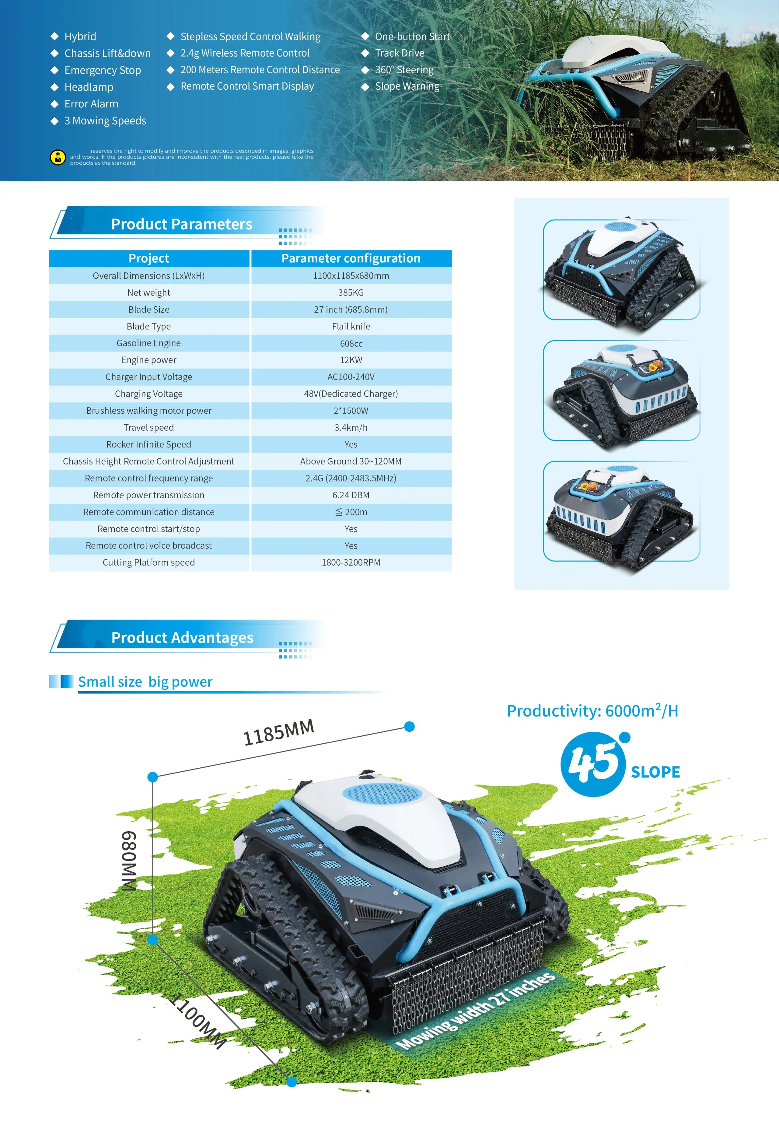 3.Our electric remote control lawn mower uses lithium iron phosphate battery, which is safe, durable and environmentally friendly, does not contain heavy metals and will not cause pollution.