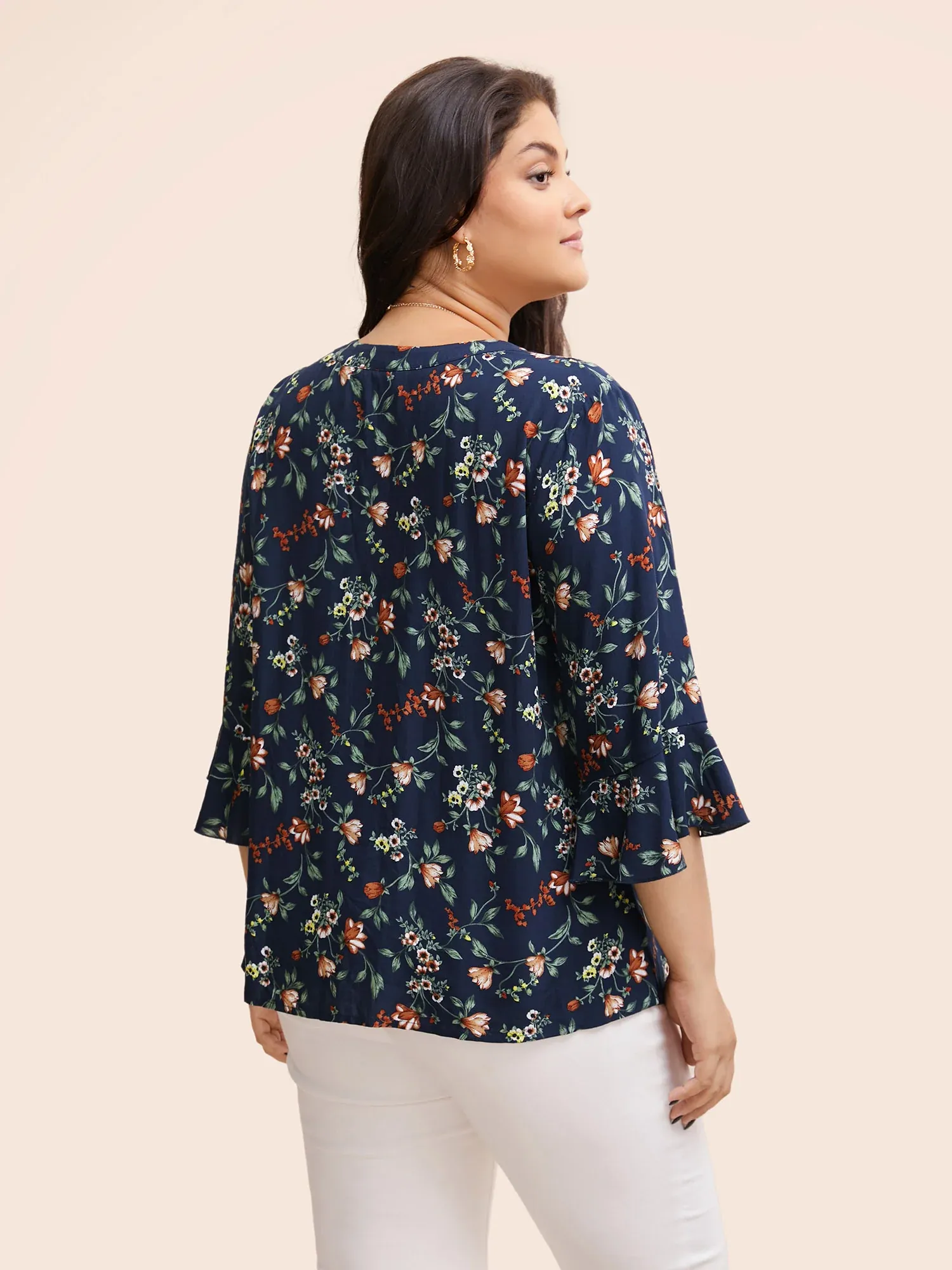 Ditsy Floral Pleated Flutter Sleeve Blouse