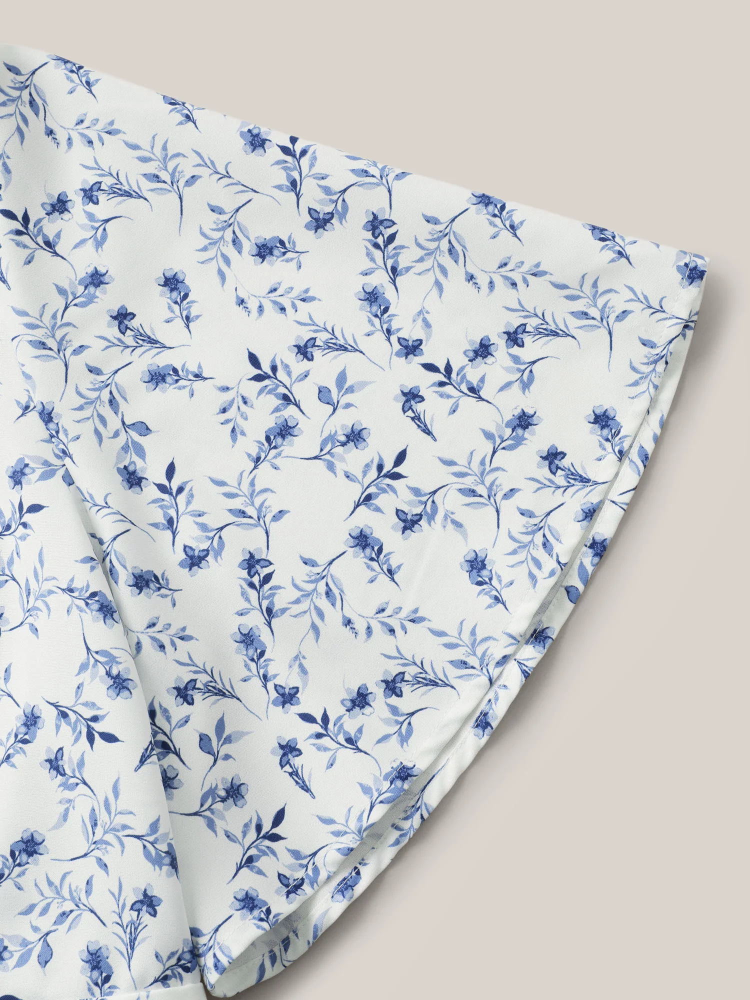 Floral Pleated Elastic Waist Ruffle Sleeve Blouse