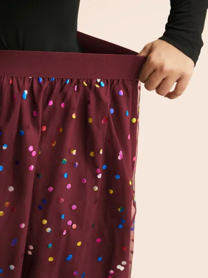 Sequin Polka Dot Tiered Mesh Skirt
