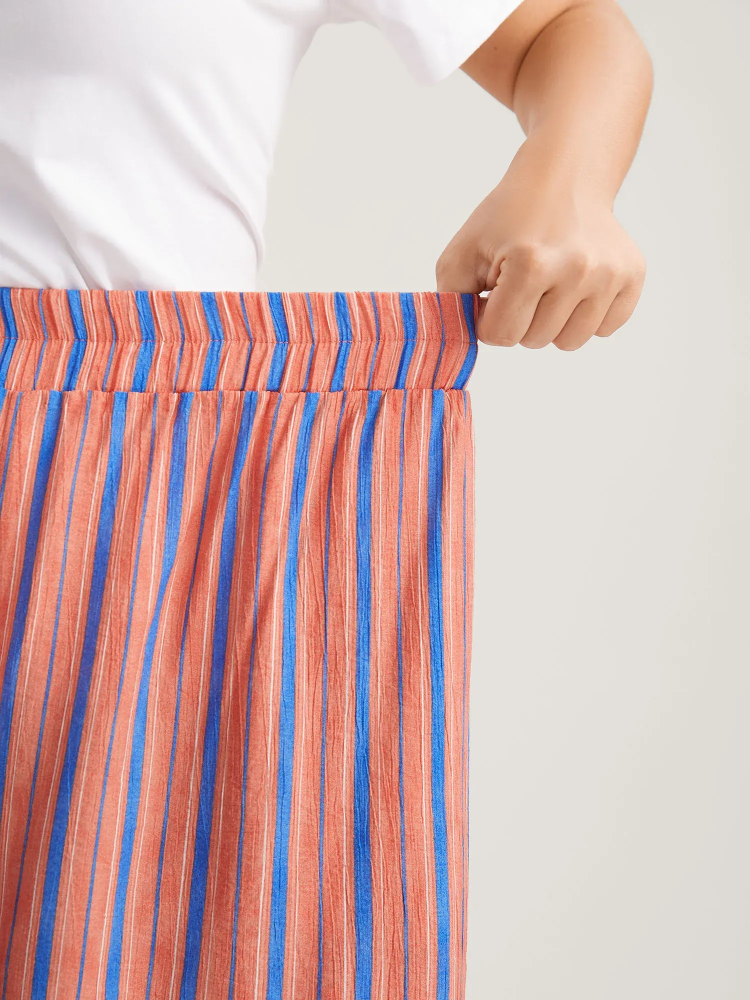 Soft Stripes Stretchy Waist Wide-Leg Pants