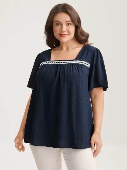 Square Neck Lace Pleated Blouse