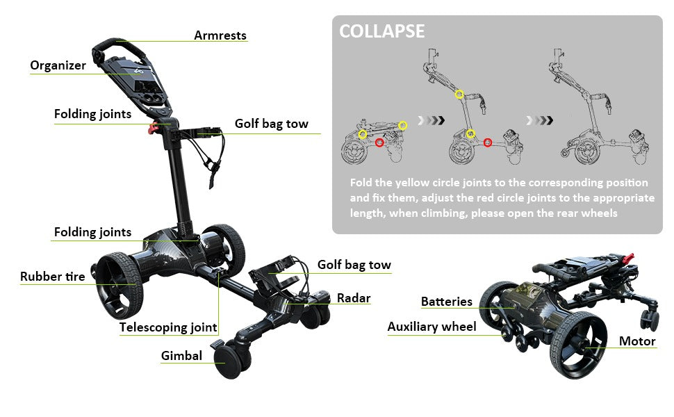 Lightweight, foldable, and smart – the trolley is designed for golfers who want easy control and smooth performance on any terrain. Perfect for carrying your gear effortlessly.